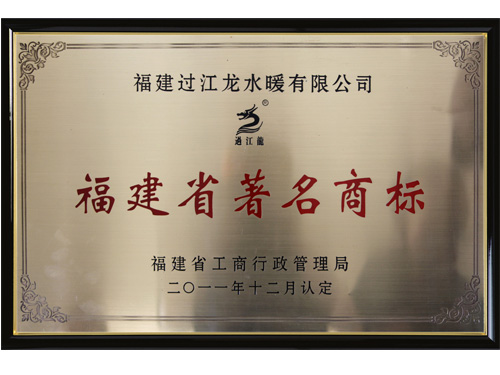 歲末年終,過江龍水暖再傳捷報,2011年12月6日,福建過江龍水暖有限公司被福建省工商局認定為福建省著名商標。 -