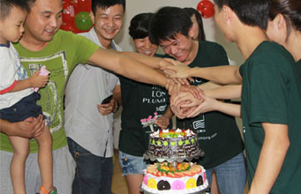 2012年7月28日,過(guò)江龍水暖溫州生產(chǎn)部為本月生日的3位員工舉辦了一場(chǎng)別開(kāi)生面的生日會(huì)。 -
