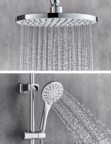 ? 9寸大頂噴,五功能花灑,含噴槍出水和緩停出水。