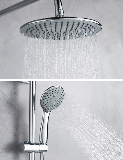 ? 9寸大頂噴,4.5寸三功能手持, 淋浴更隨心。