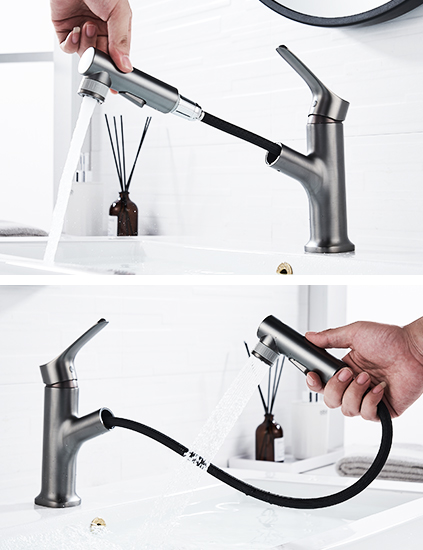 ? 抽拉設計,50CM抽拉洗漱空間; 360°靈活出水,清潔無死角;