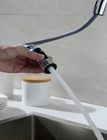 重力抽拉設計,可保證抽拉回位經久耐用。 三檔切換出水模式 采用單密封進口陶瓷片閥芯,耐磨損耐老化,手感舒適。 前置過濾網,更好的保護龍頭產品