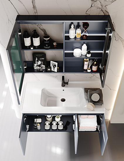 顏色:主柜柜體、鏡柜柜體為淡黃色,門板白色